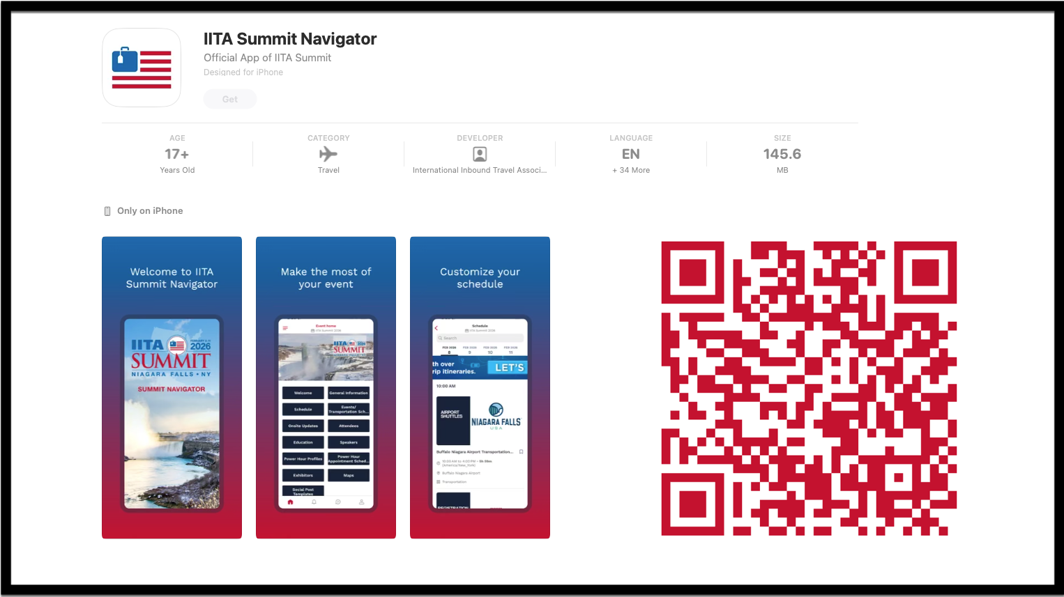 📲 If you already have the IITA Summit Navigator app installed on your phone, simply scan the QR code below and the app will open with content from this year’s Summit.