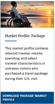 NTTO also produces 12 SIAT-based market profile reports that detail the characteristics of overseas visitors engaged in specific activities in the United States. One of these profiles is Package, which contains inbound traveler volume and select traveler characteristics of overseas visitors who purchased a travel package during their U.S. visit.
