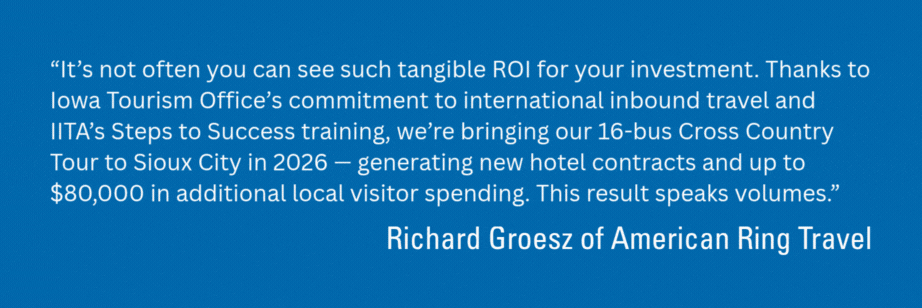 Through your organizations’ partners completing the International Inbound Insider: Steps to SuccessTM Online Program, you help strengthen your international market and entire destination appeal. The Online program’s objective is to rapidly prepare DMOs and tourism businesses to work efficiently and effectively with international inbound travel trade partners. Participants learn the concrete skills that drive results – how to create salable products, effective trade pricing (confidential net rates), professional communication, and operational readiness, so they can secure contracts and build sustainable international business. The training enables stakeholders to: